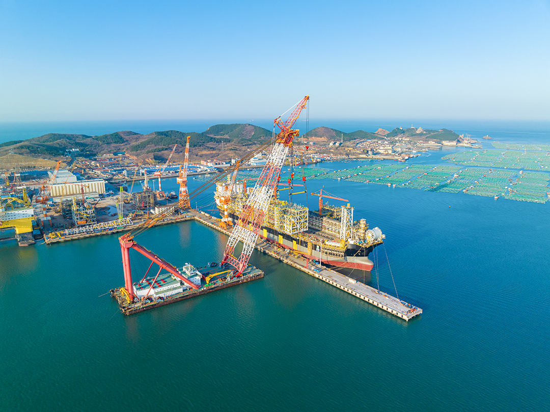巨力索具5000T吊梁工作体系机械助力东北地区自理制做的最主要总吨位、最主要储宇量的一种新型海底浮式煤气自然美气盛产搭配NGUYA FLNG上半部传感器设备吊装常胜,为随后重任落成了更加坚固几乎。