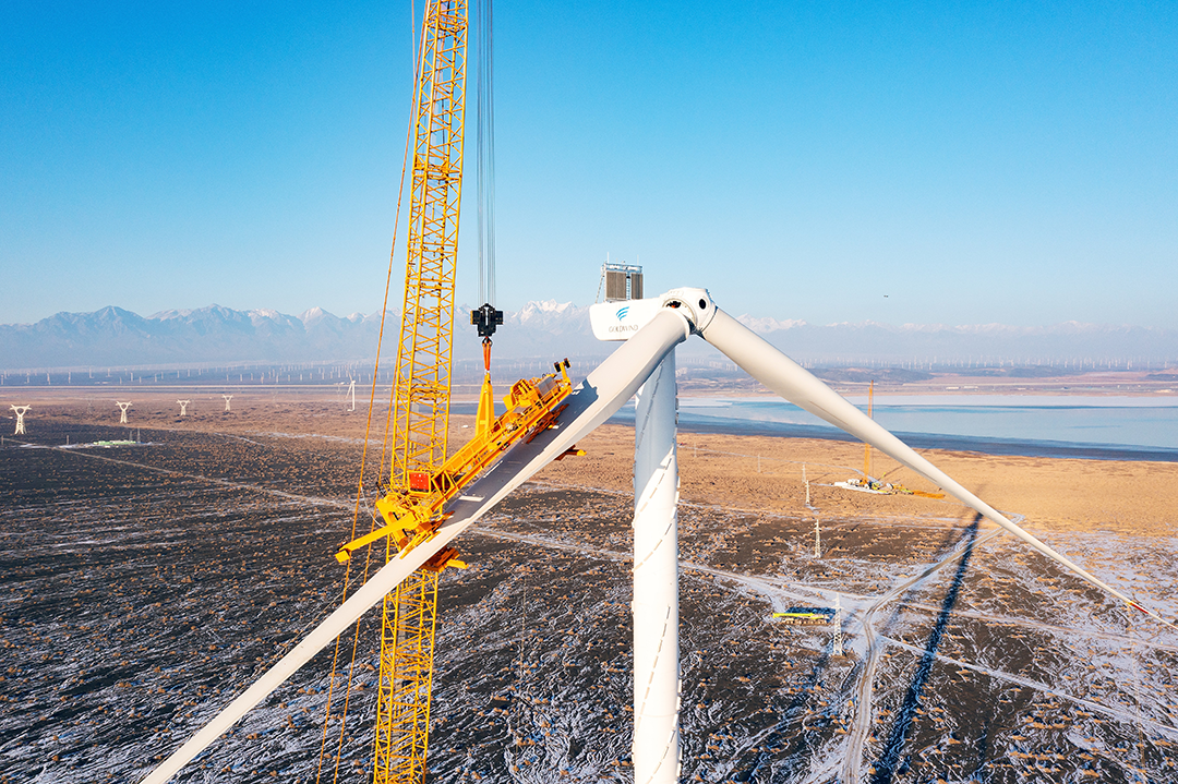 巨力索具研发的6MW大角度斜插单叶片吊具在新疆乌鲁木齐金风天翼20MW风电名目场顺遂完成吊装任务。